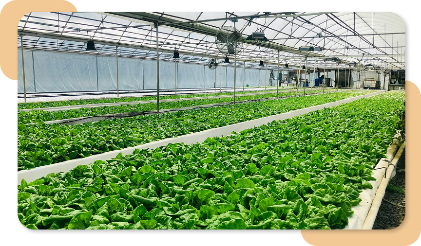 We use both Soil-Less Hydroponic & Aquaponic systems integrated to produce fresh Leafy Greens, with natural resources waste management.